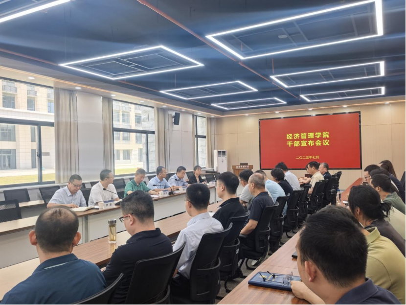 7月16日下午,经济管理学院干部宣布会议在长安校区宏观经济大楼124报告厅举行。校党委书记蒋林,校党委组织部常务副部长周超出席会议,学院党政班子成员、院长助理、各系部中心主任、教工党支部书记、工会主席、科级以上干部参加会议,会议由校党委常委、副校长张志飞主持。