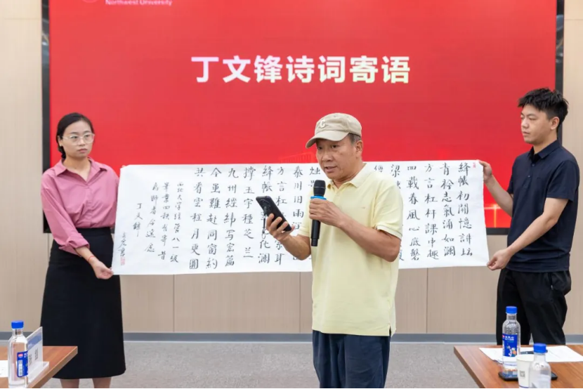 丁文锋老师送来两首诗词寄语,由校友张焕军代为朗诵。