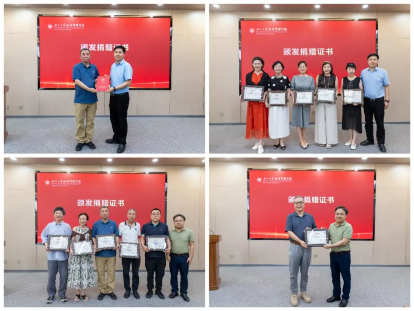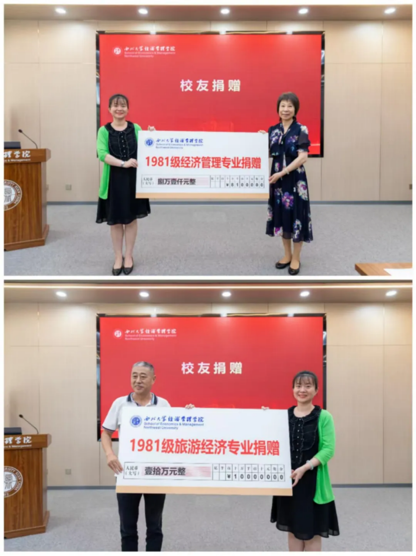 崔延力和杨晓分别向81级旅游经济班和每位捐赠校友,颁发捐赠证书。
