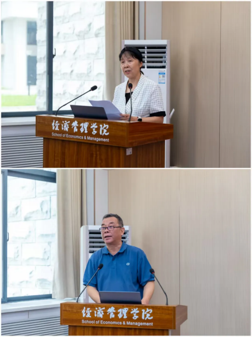教师代表王忠民、韦苇分别发言。两位老师回顾从老经济系到经管学院的变迁与发展过程,强调何炼成等老一辈经济学家的卓越贡献,分享与校友们在大学期间朝夕相处的点点滴滴和轶闻趣事,赞扬每位校友所取得的成就并以他/她们感到骄傲。最后,两位老师祝福学院的未来更加美好,培养出来更多的经管人才。