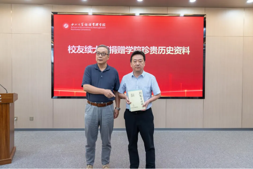 校友续大康捐赠学院珍贵历史资料,1985年印刷的《研究生论坛》论文集第3-4册,内有张维迎、刘世锦、邹东涛等校友的早期论文。