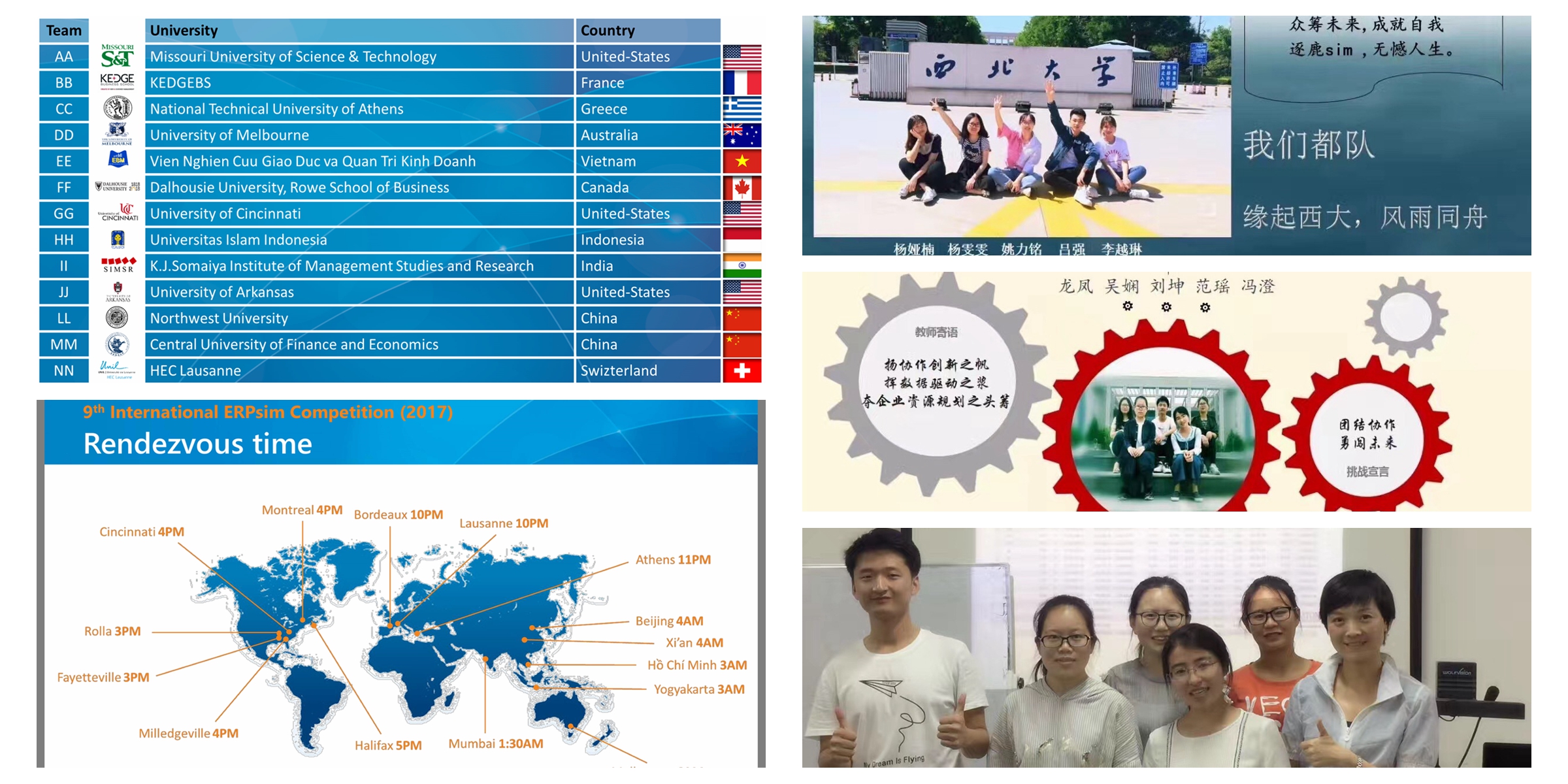 2017年是我国第一次接受邀请参加ERPsim国际竞赛,为此,SAP大学联盟(SAP University Alliances,简称UA)携手SAP大学能力中心(SAP University Competence Center,简称UCC)举行了第一届SAP全国大学生角色挑战模拟经营大赛,拟在为国际赛筛选中国区参赛队伍,全国总决赛的前两名队伍晋级参加HEC Montreal ERPsim lab举办的第九届ERPsim全球大赛。自5月6日以来,全国近50所知名高等院校、66支参赛队伍报名参加比赛。参赛队伍包括同济大学、对外经济贸易大学、北京交通大学、中央财经大学、东北财经大学、上海对外经贸大学、江西财经大学、西南交通大学、东华大学等高校。各支参赛队伍遍及计算机、软件工程、经济与管理、金融等专业。经过选拔和推荐,我校今年组建了两只本科生队伍参赛,学生分别来自经济管理学院和信息科学与技术学院。同学们通过比赛增强了理论实践;丰富了国际化视野;锻炼了团队协作精神;培养了组织、决策、管理能力。